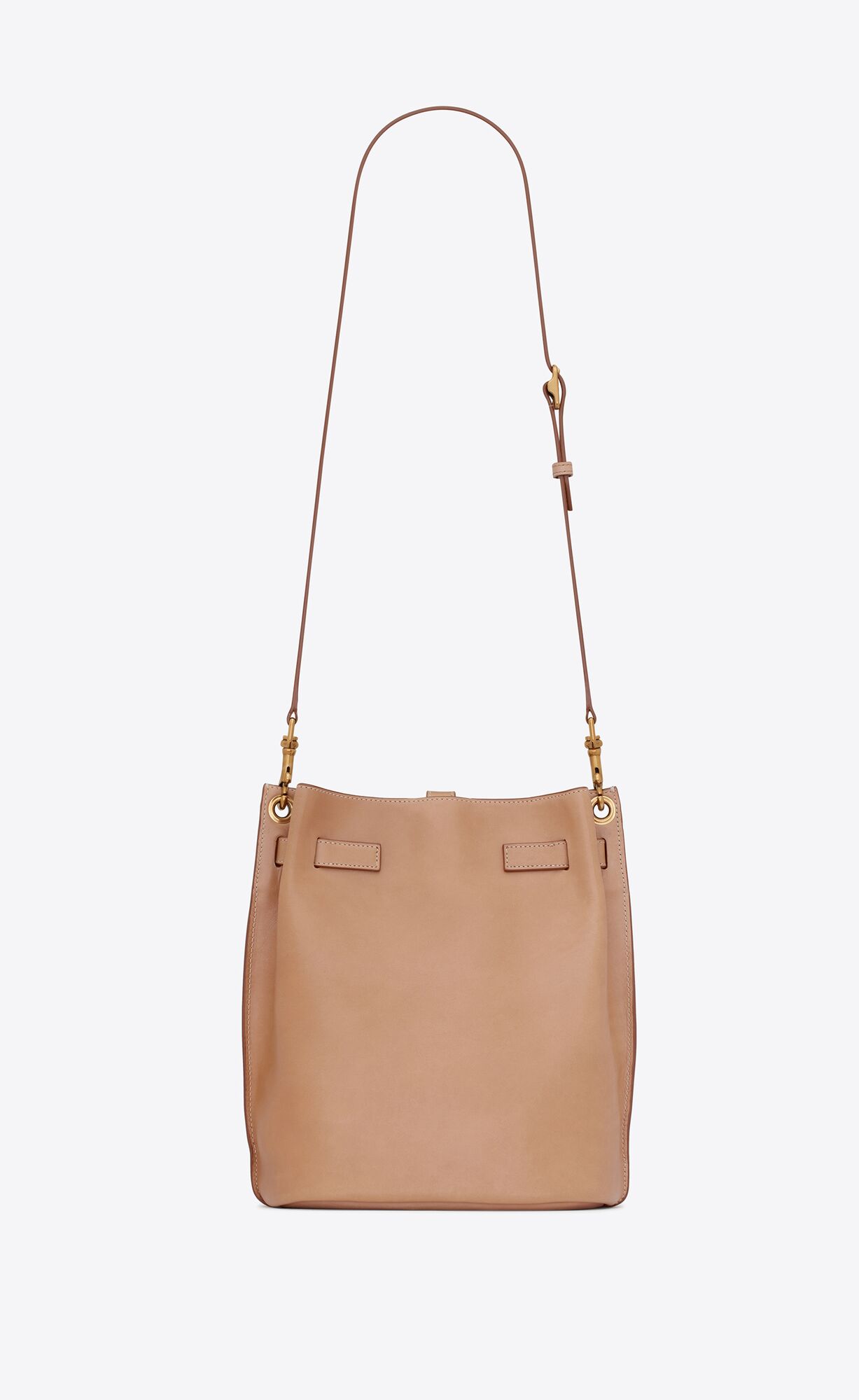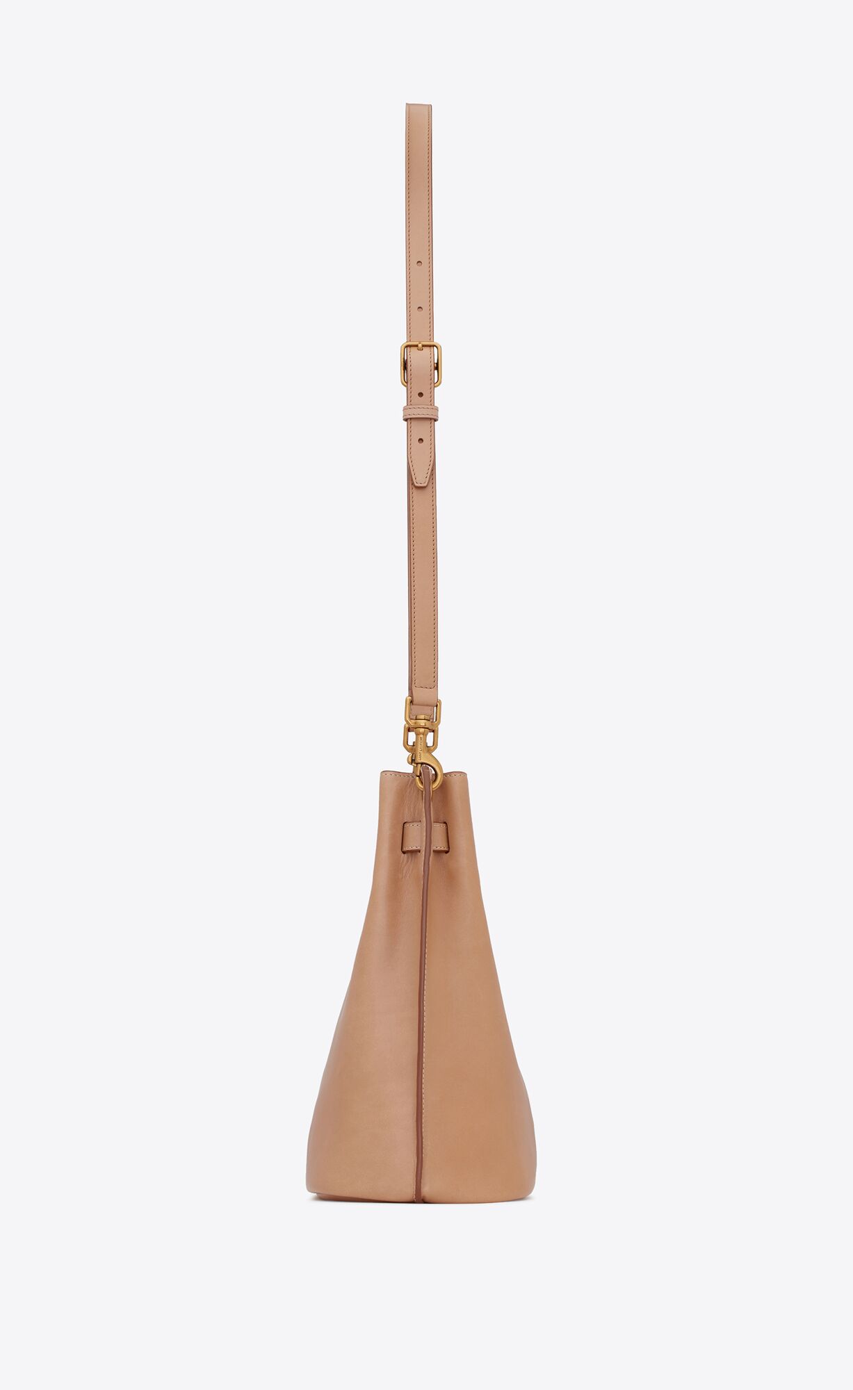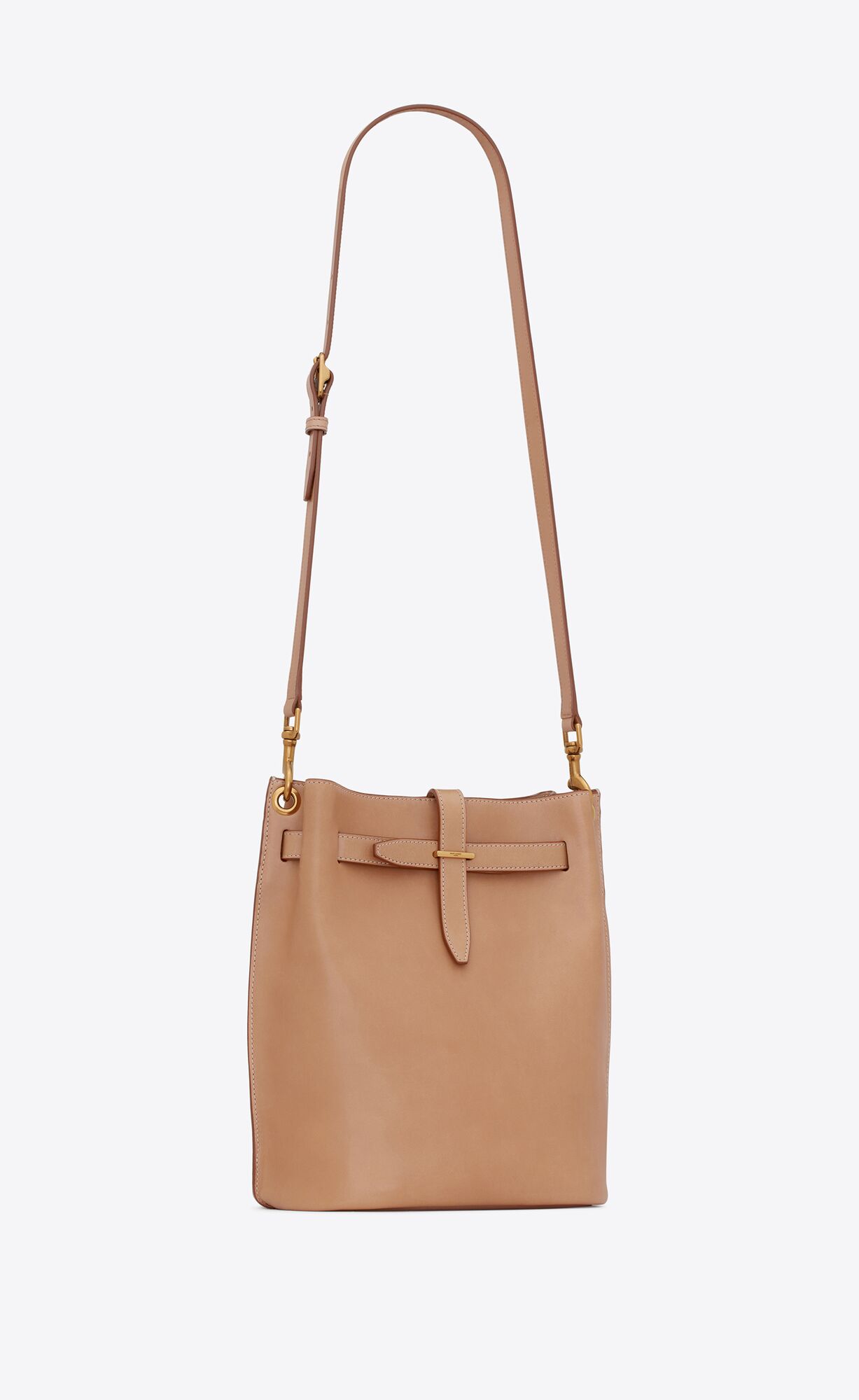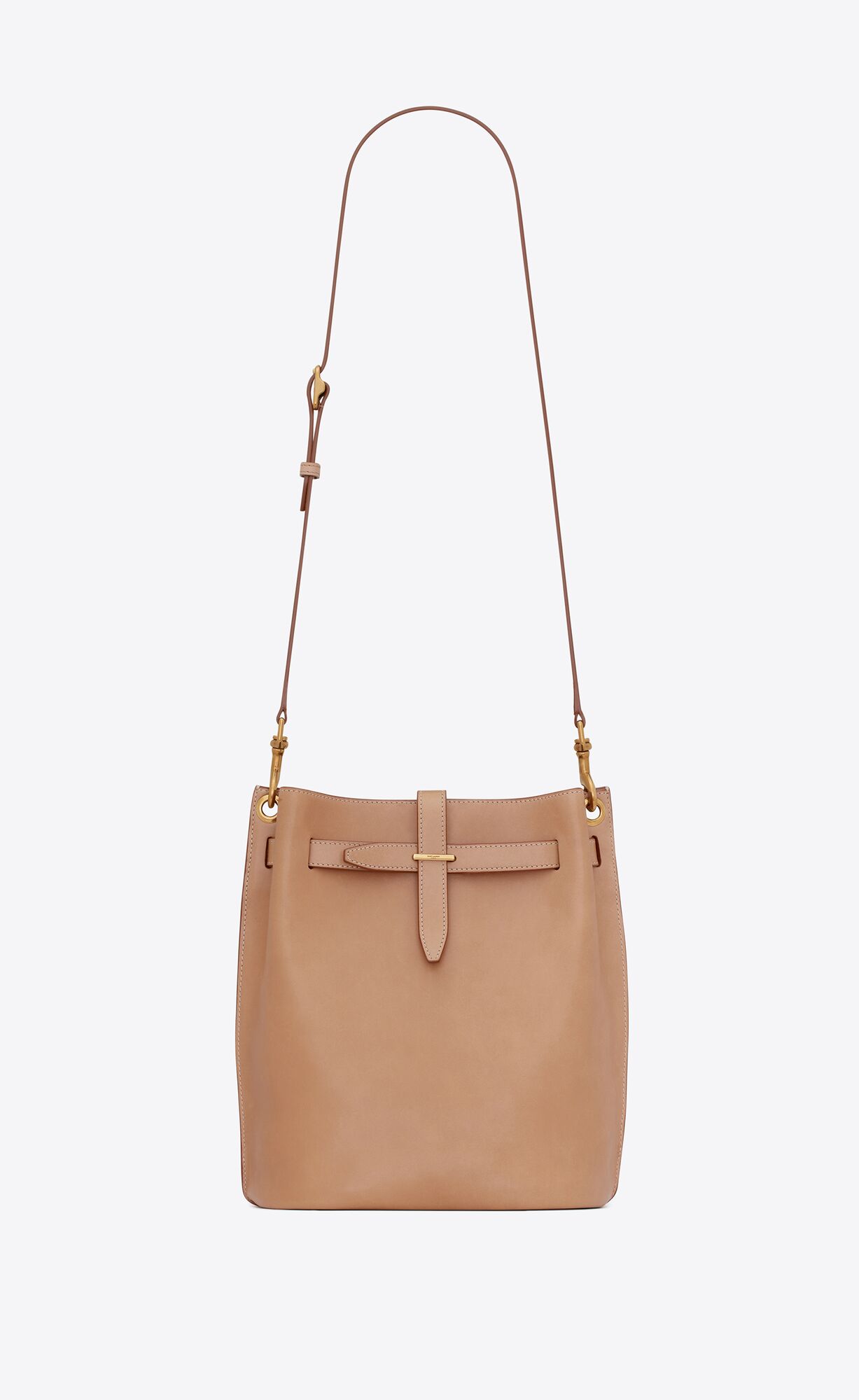 BUCKET BAG WITH TAB BUCKLE CLOSURE.