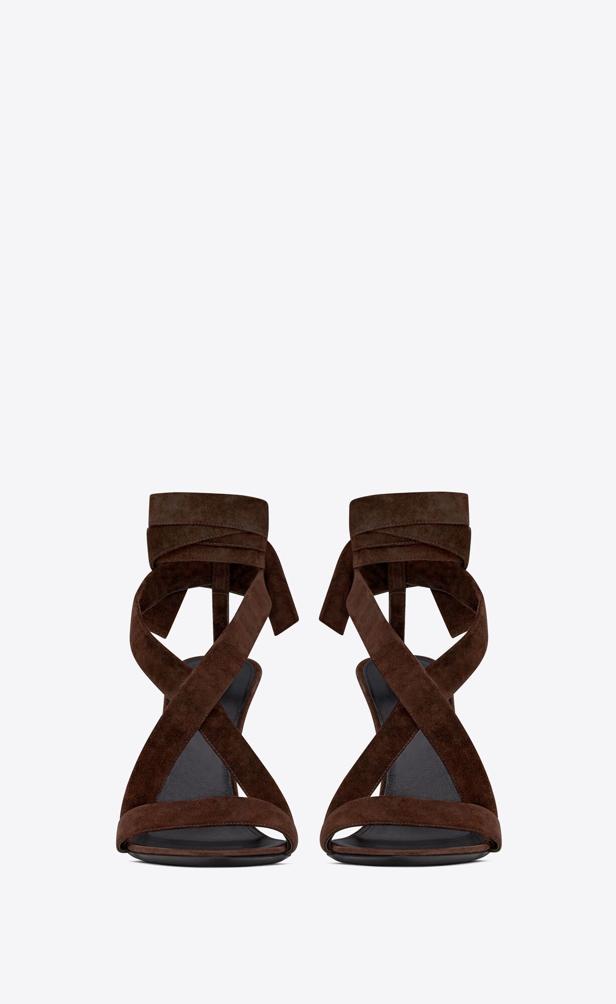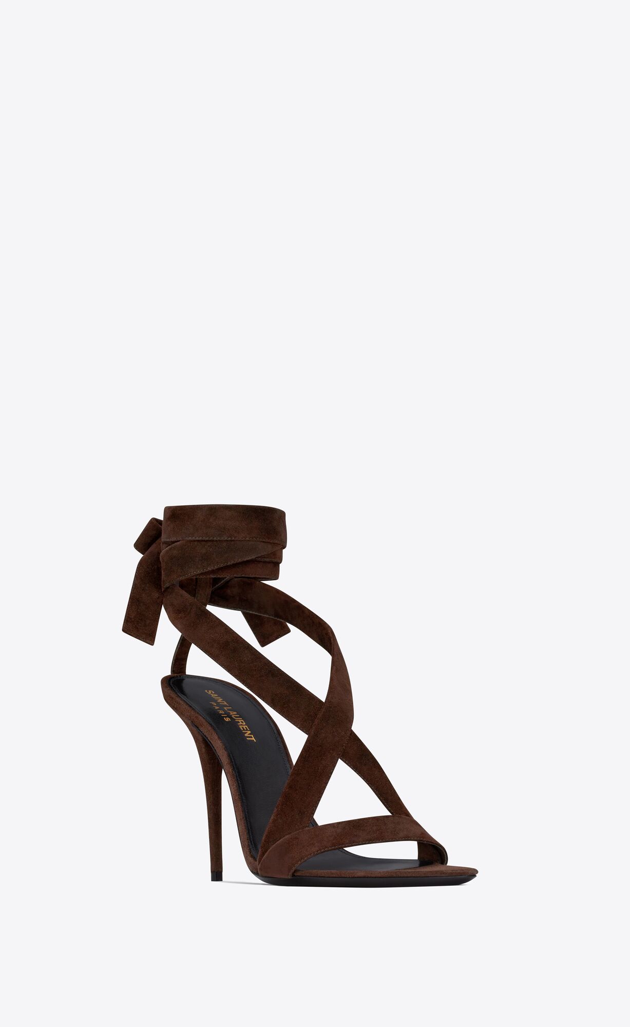 POINTED-TOE SANDALS FEATURING CRISSCROSSED AND KNOTTED STRAPS AND COVERED STILETTO HEEL.