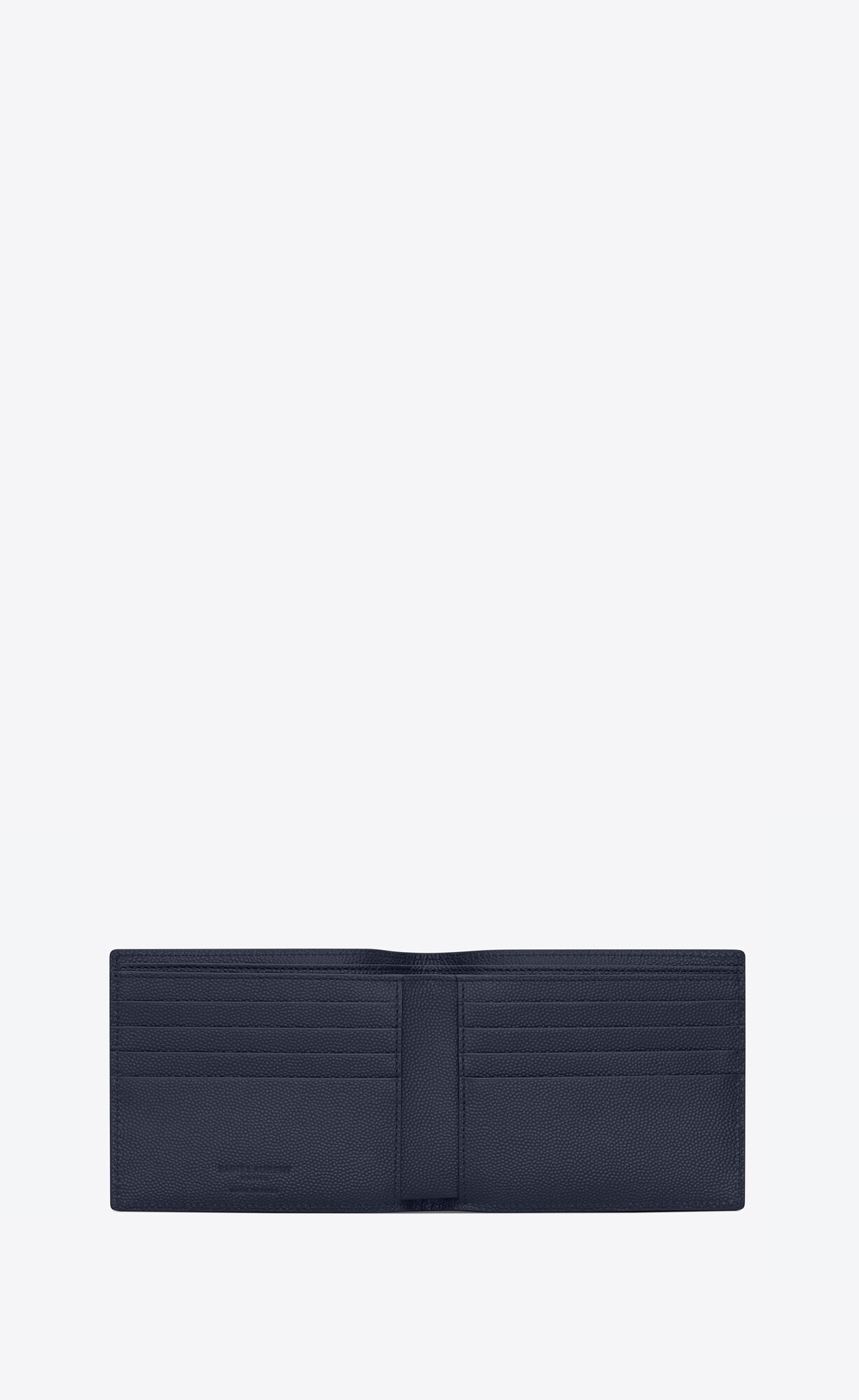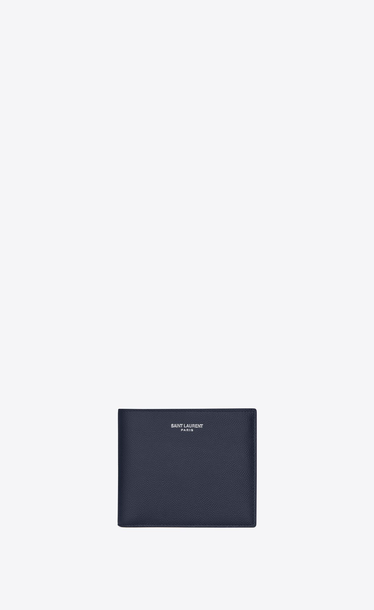 saint laurent single-fold wallet with embossed saint laurent signature made with metal-free tanned leather.