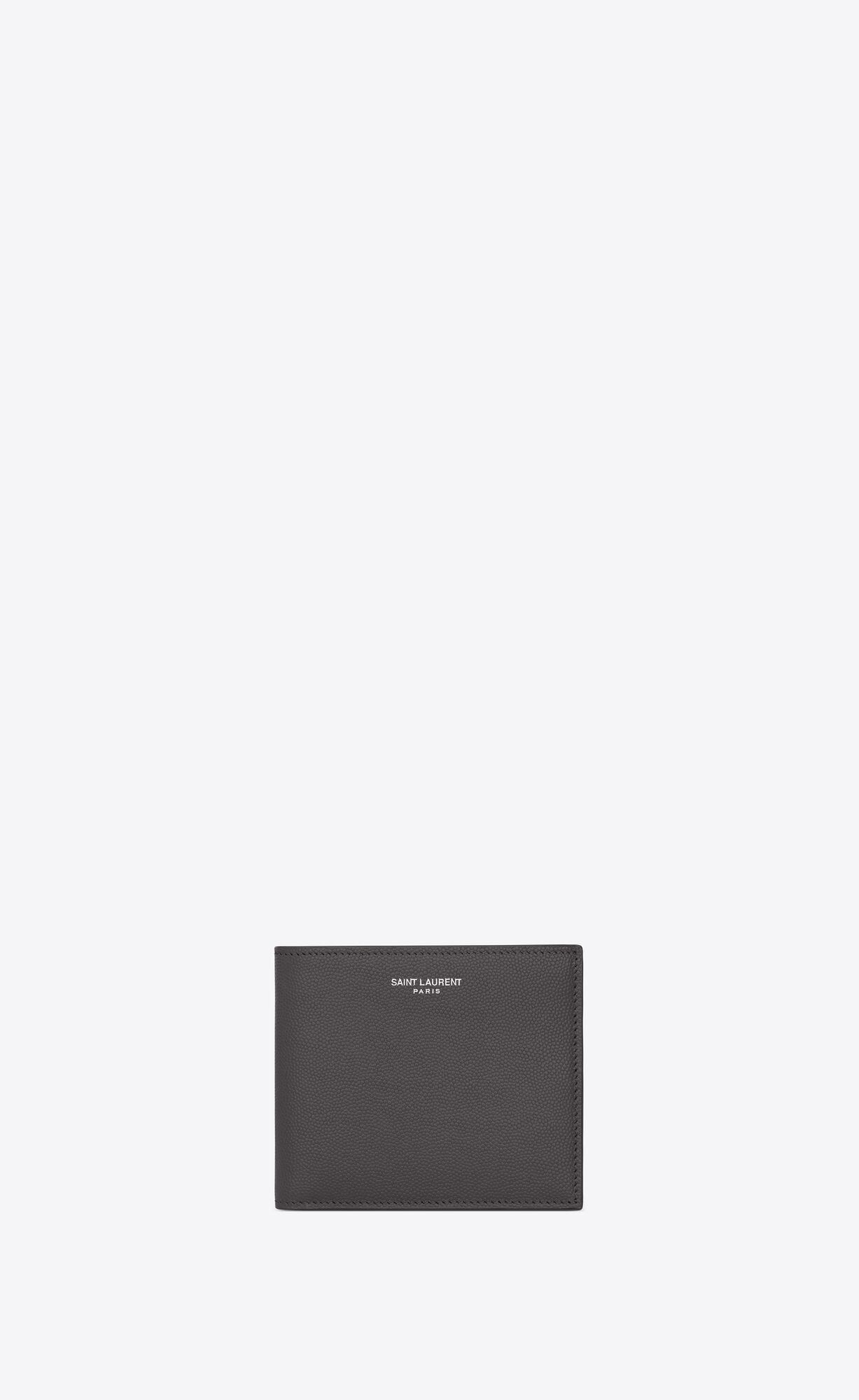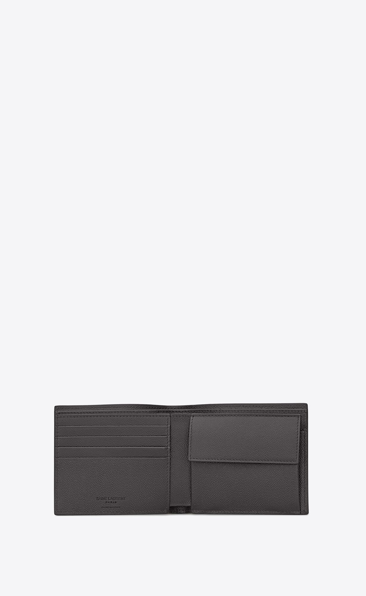 Single-fold wallet made with metal-free tanned leather, featuring a coin pouch and embossed Saint Laurent Paris signature.