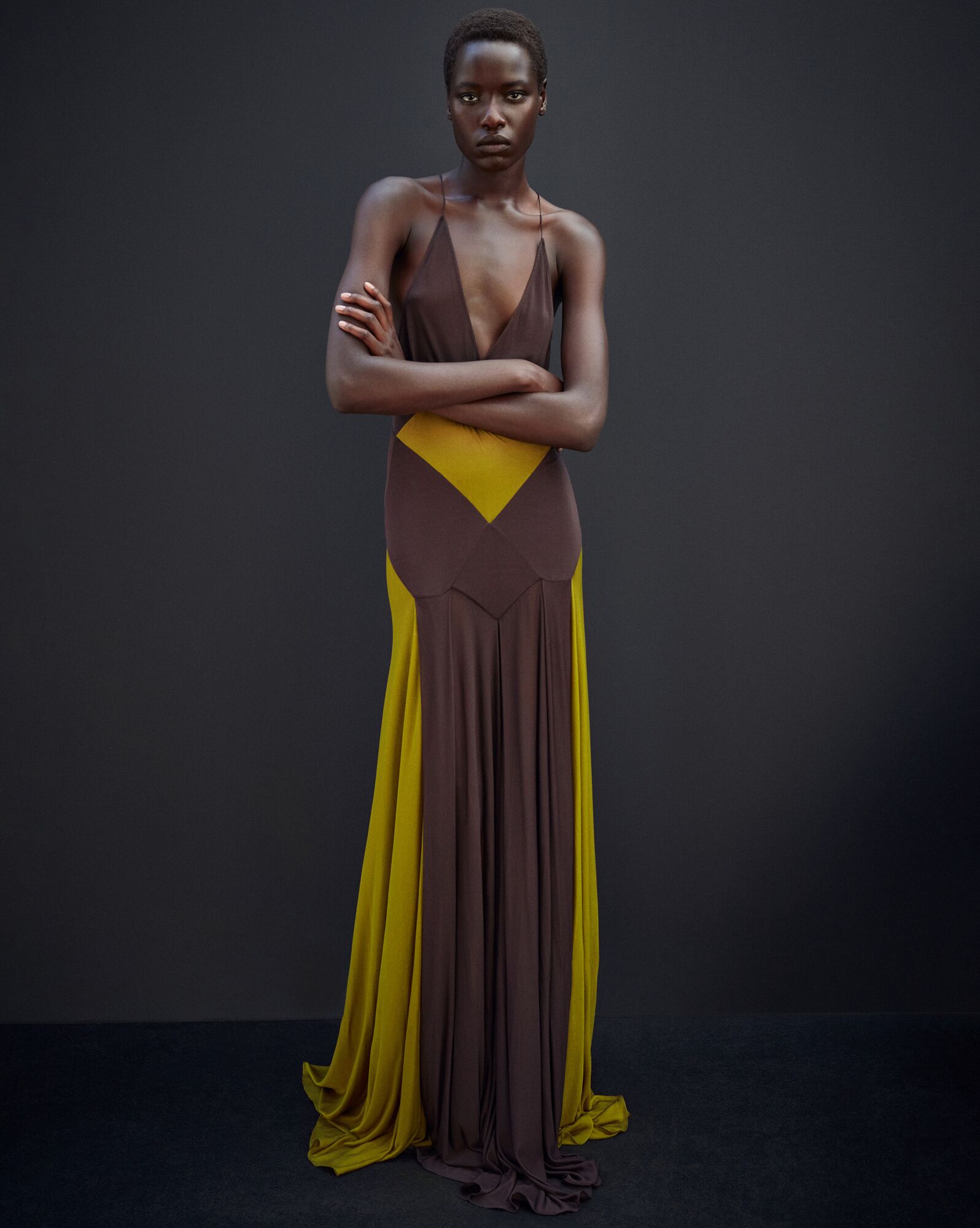 SEMI-SHEER DRESS made with RESPONSIBLE VISCOSE, WITH PLUNGING V-NECK AND CROSS BACK STRAPS.
