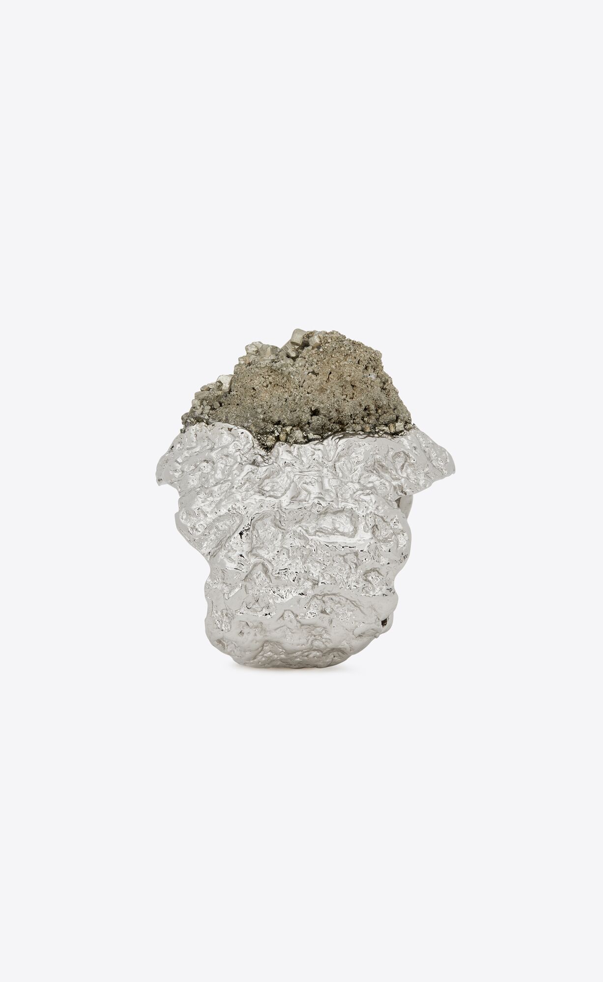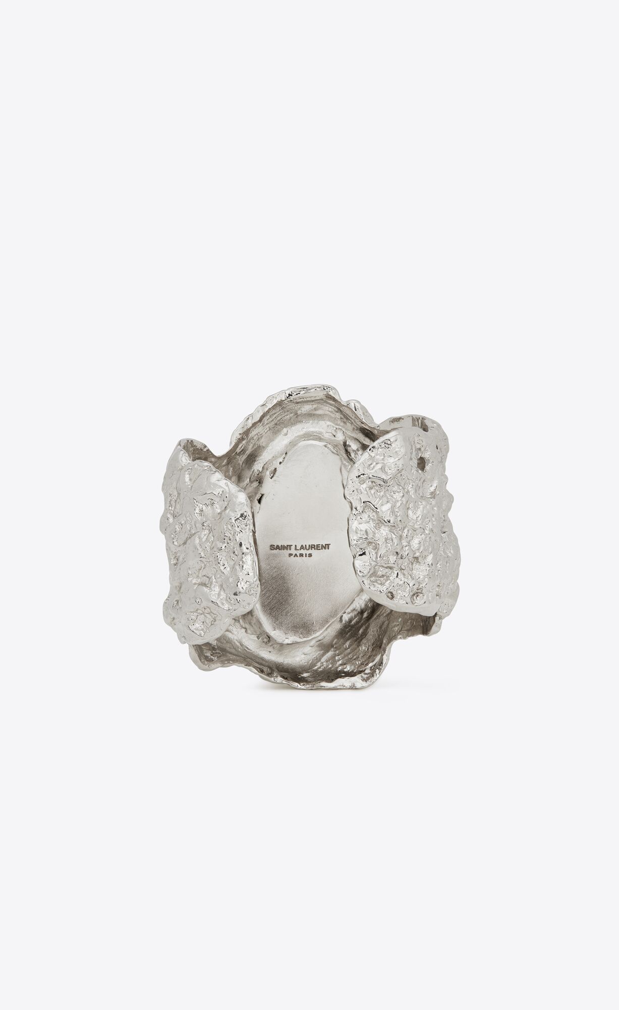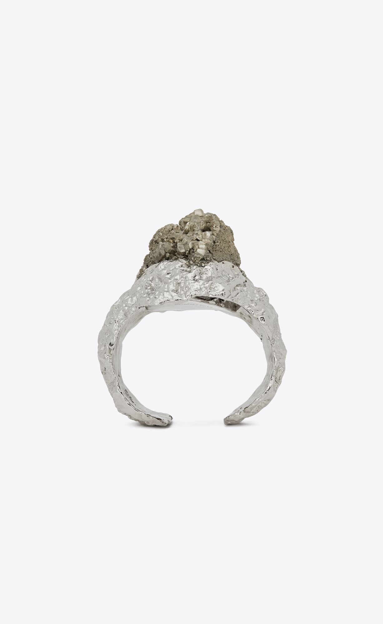 Oversized highly textured cuff bracelet featuring raw sparkling stone.