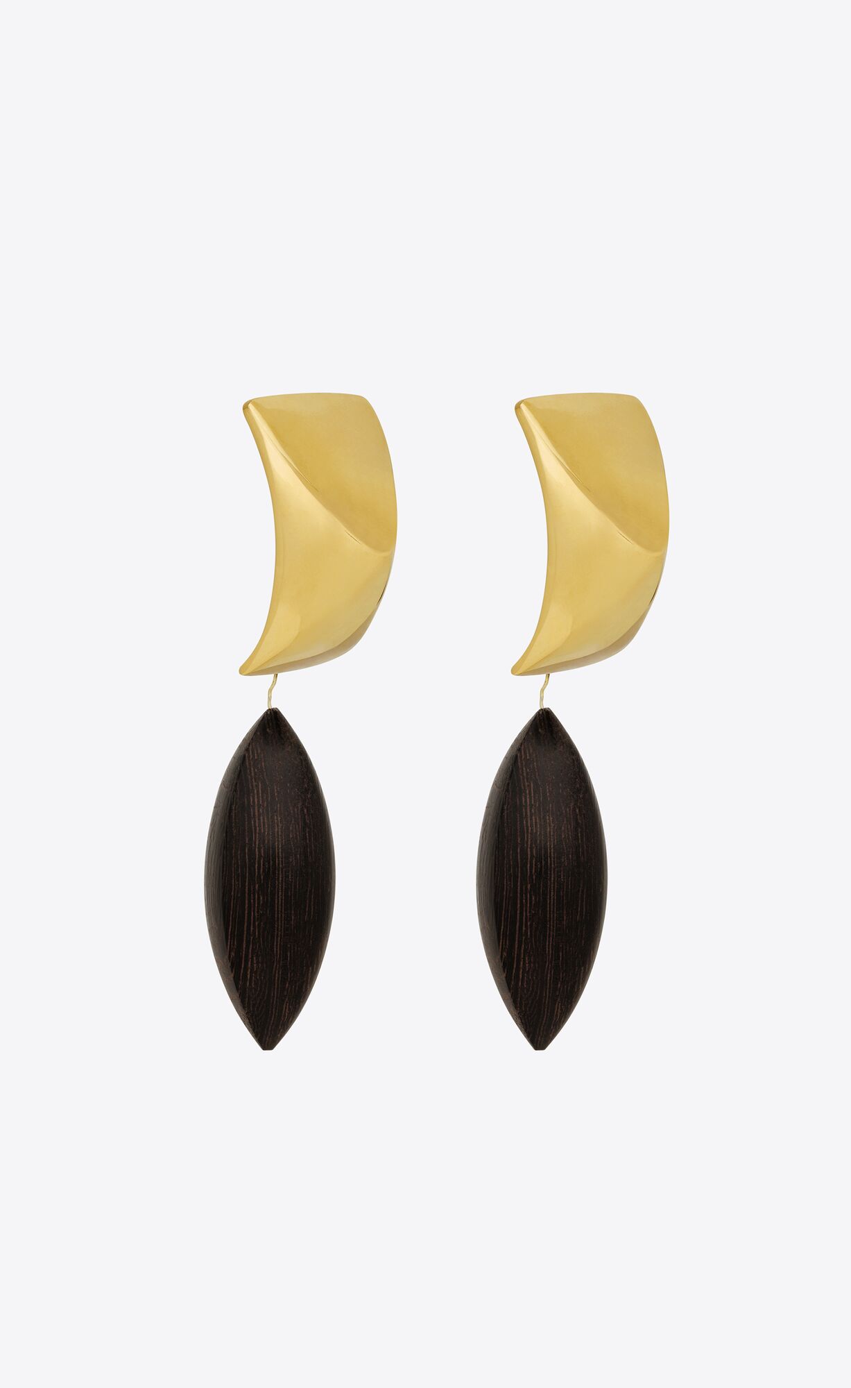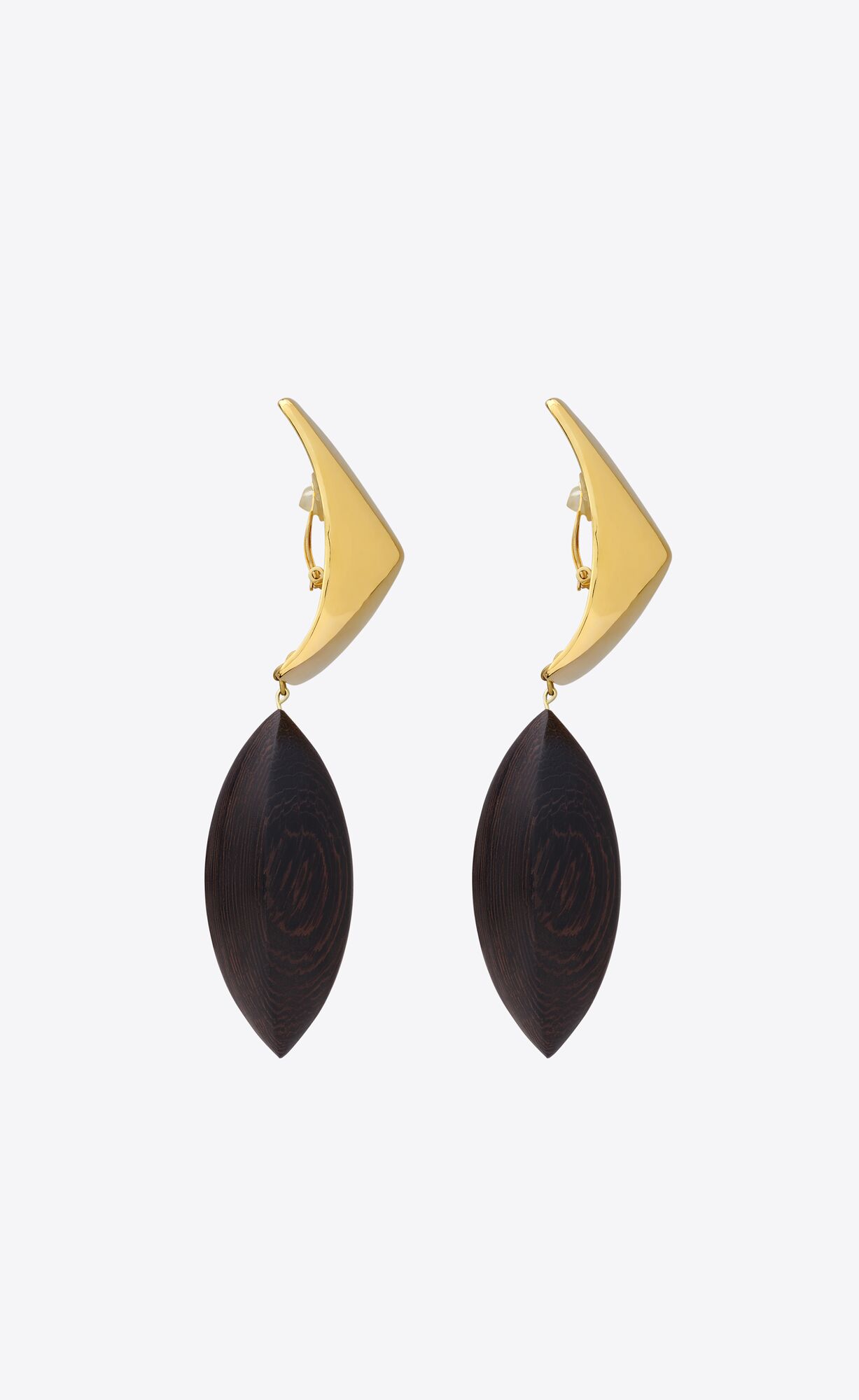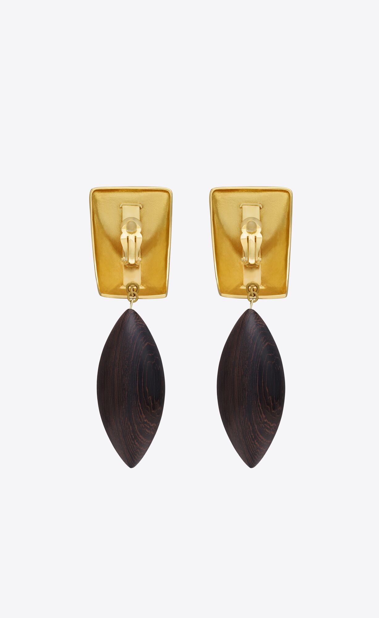 Earrings with a pyramidal plate and an oval-shaped pendant.