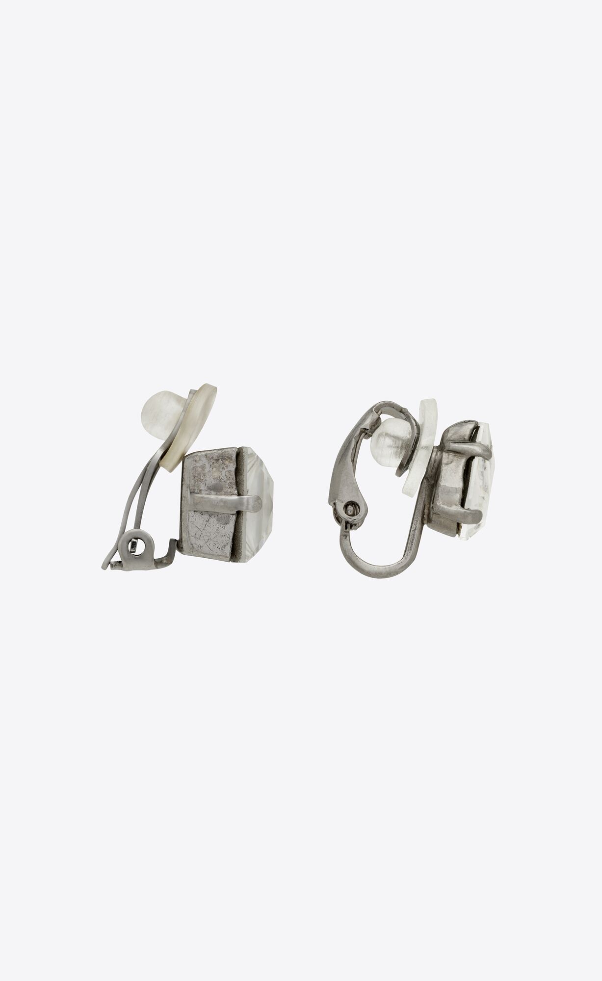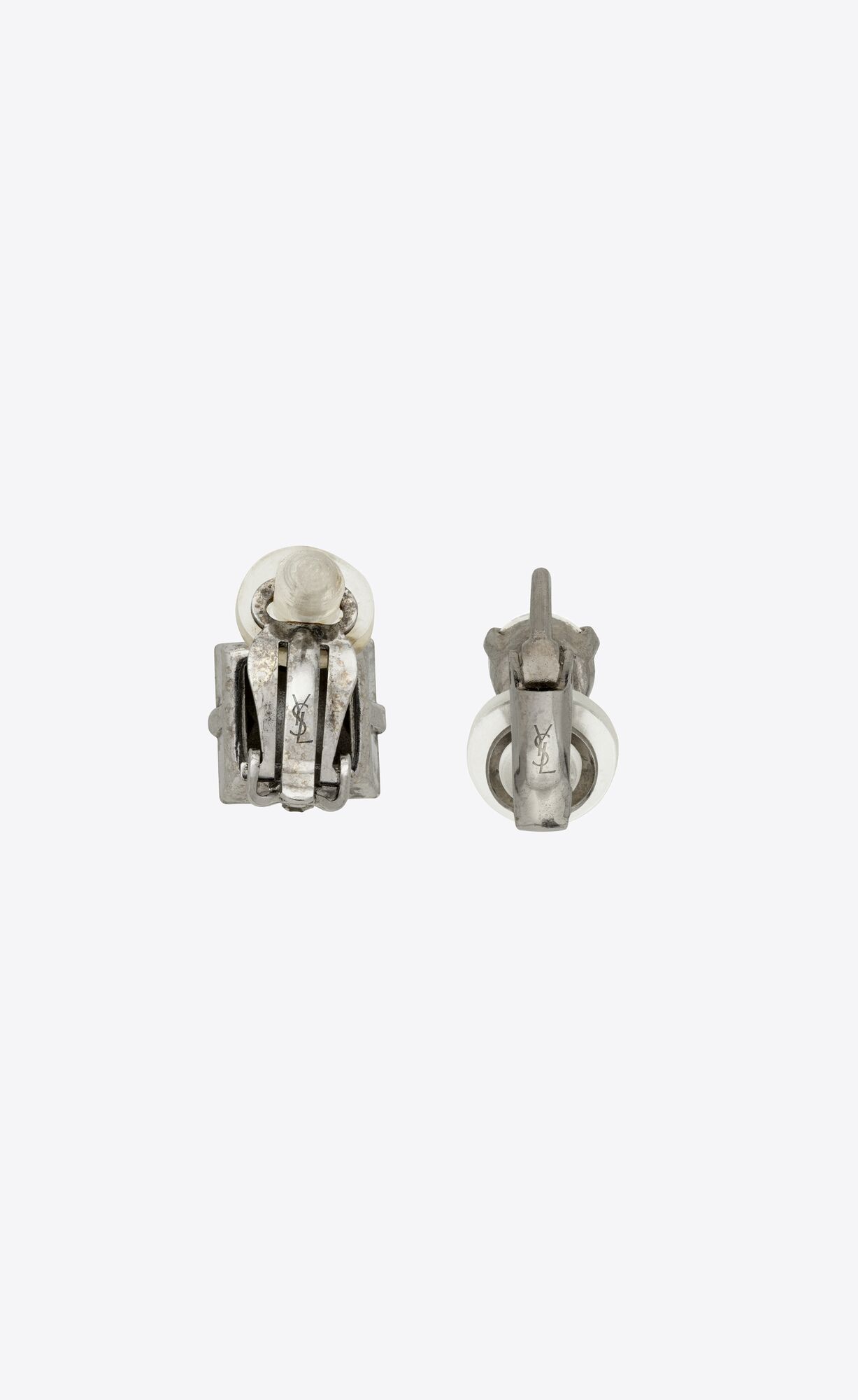 SET OF TWO ASYMMETRIC CLIP-ON EARCUFFS WITH A SQUARE AND PEAR SHAPED RHINESTONE.