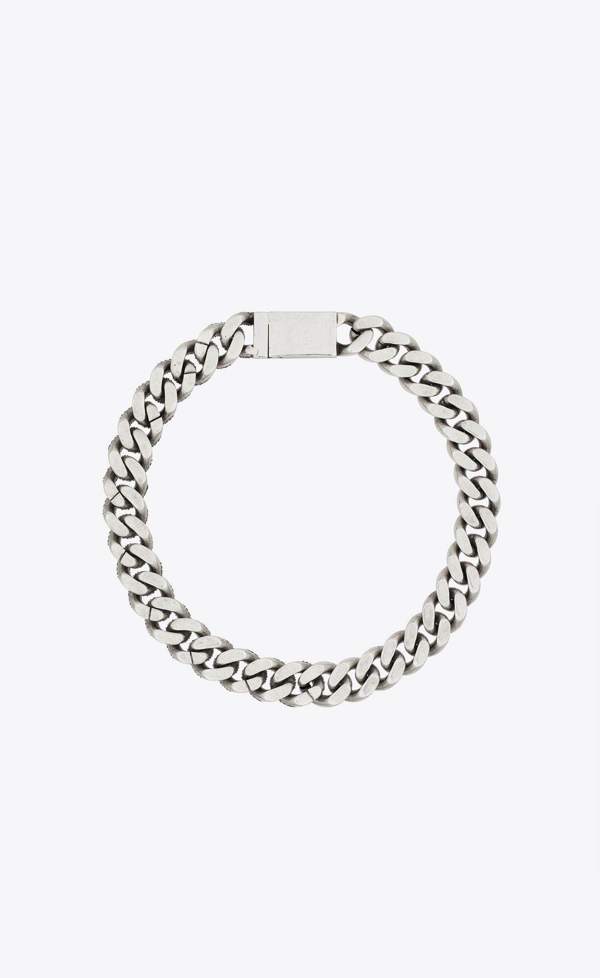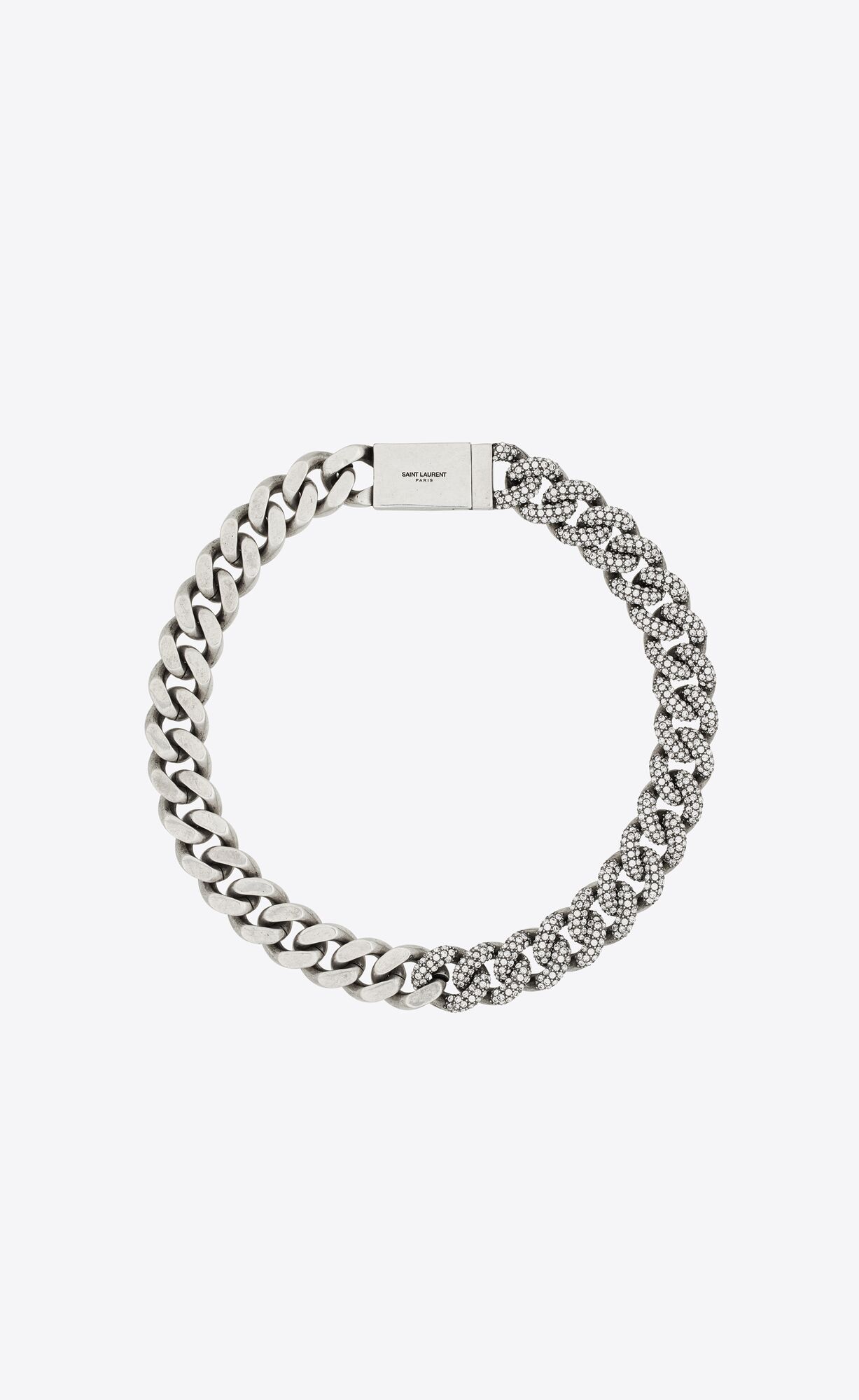 Chunky curb chain necklace with crystal links on one half and silver-tone links on the other.
