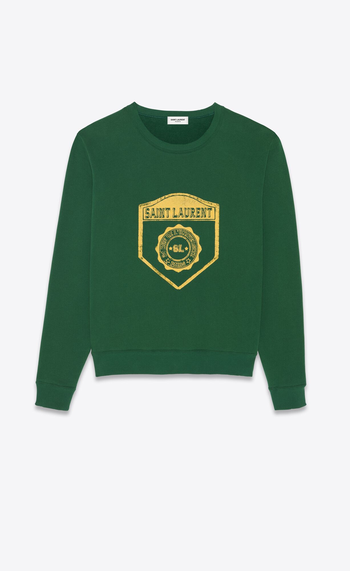 Classic round-neck sweatshirt made with organic cotton with ribbed trims and "Saint Laurent 21 rue de l'université" print.