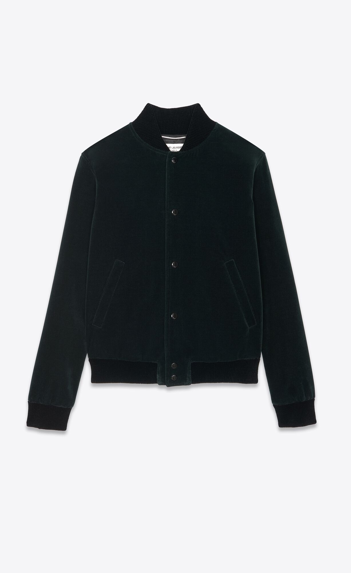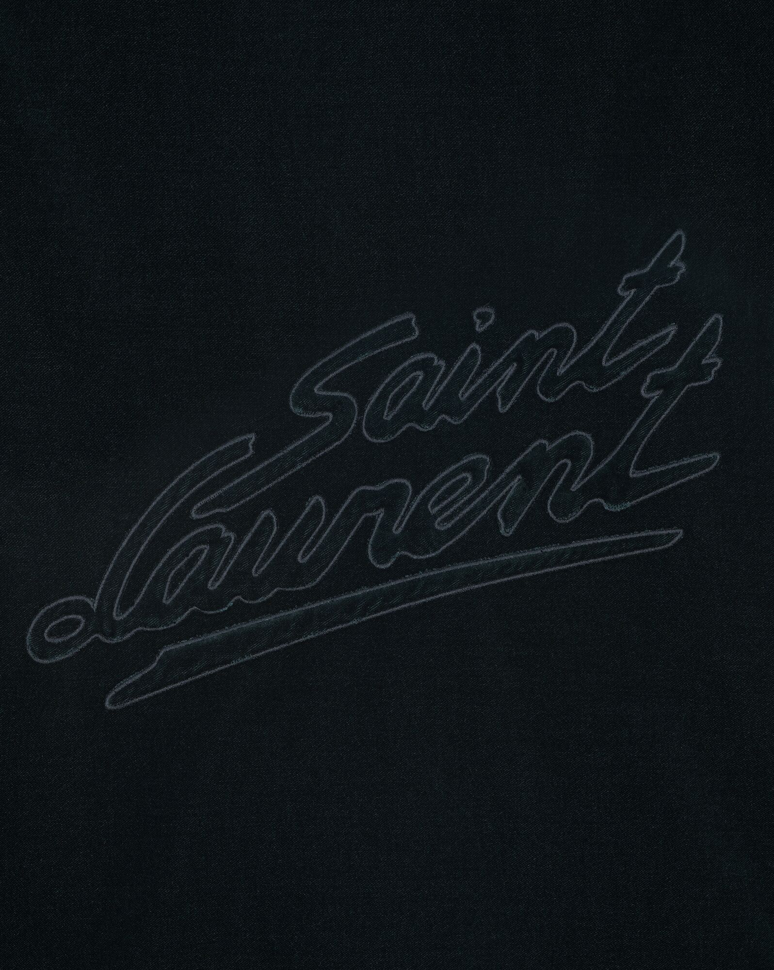 Teddy jacket made with organic cotton, with ribbed collar, front button closure and tonal Saint Laurent signature on the back.