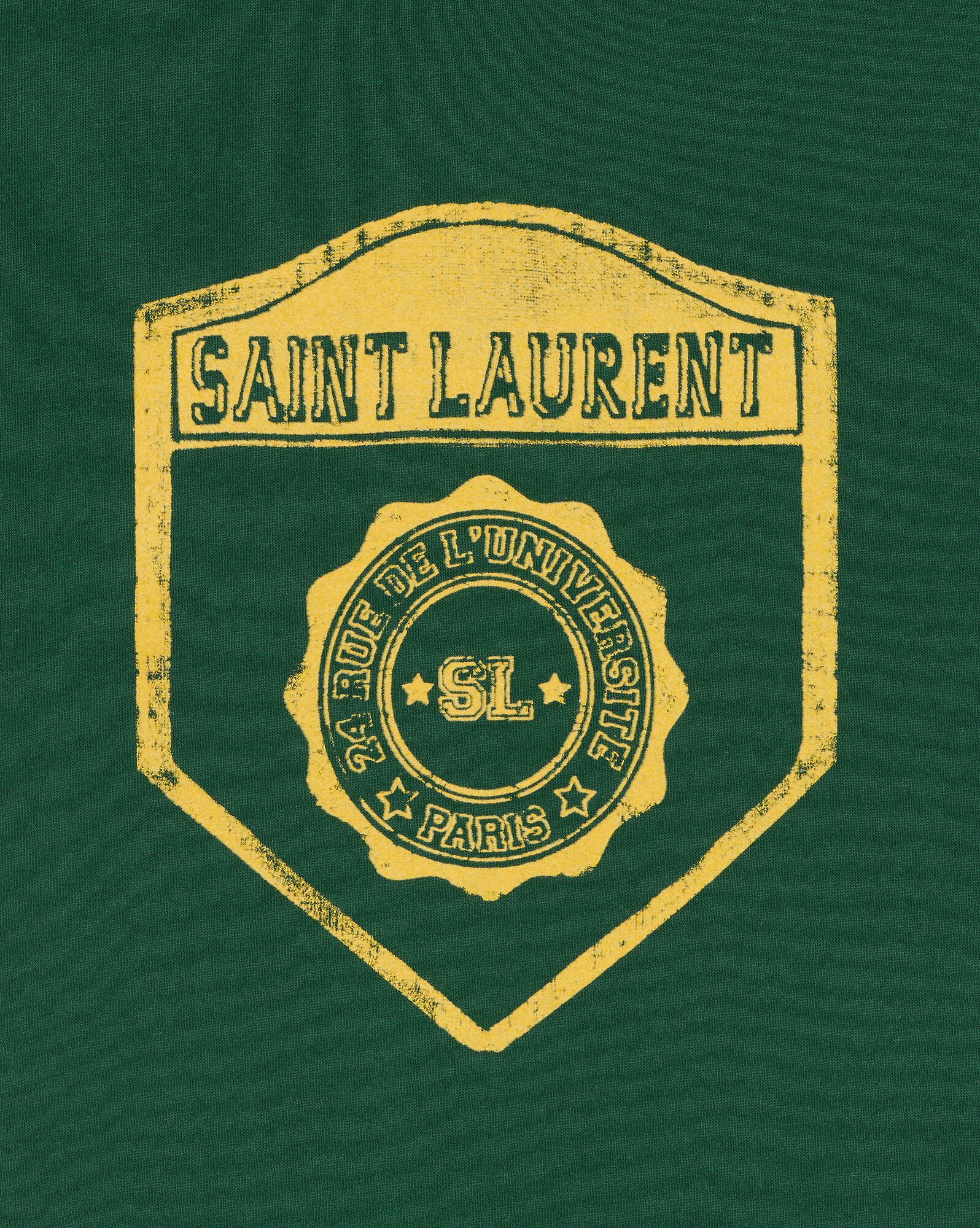 Classic T-shirt made with organic cotton, with round neck and "Saint Laurent 21 rue de l'université" print.