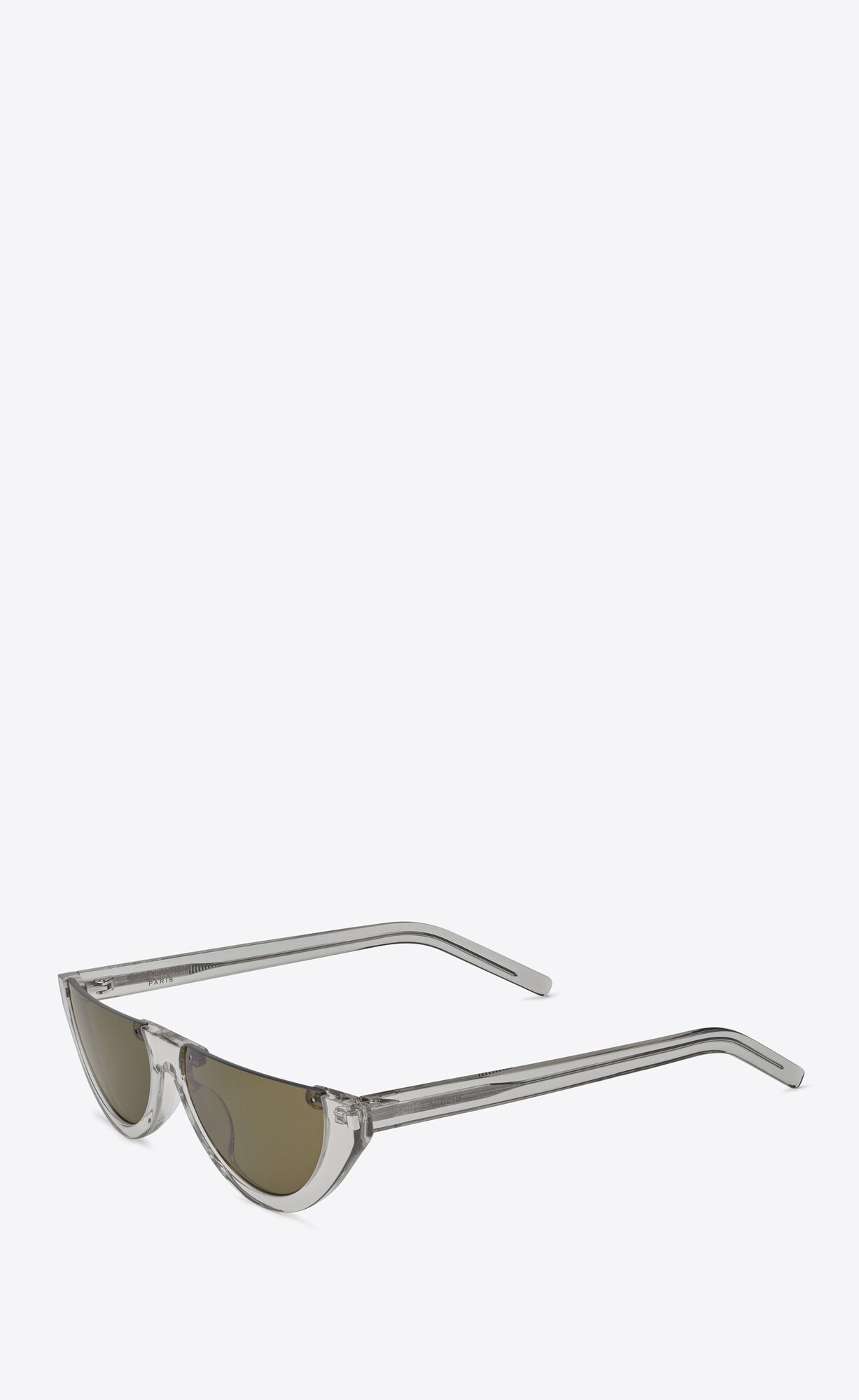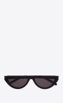Sunglasses with half-rim elongated cat-eye acetate frames and nylon lenses.