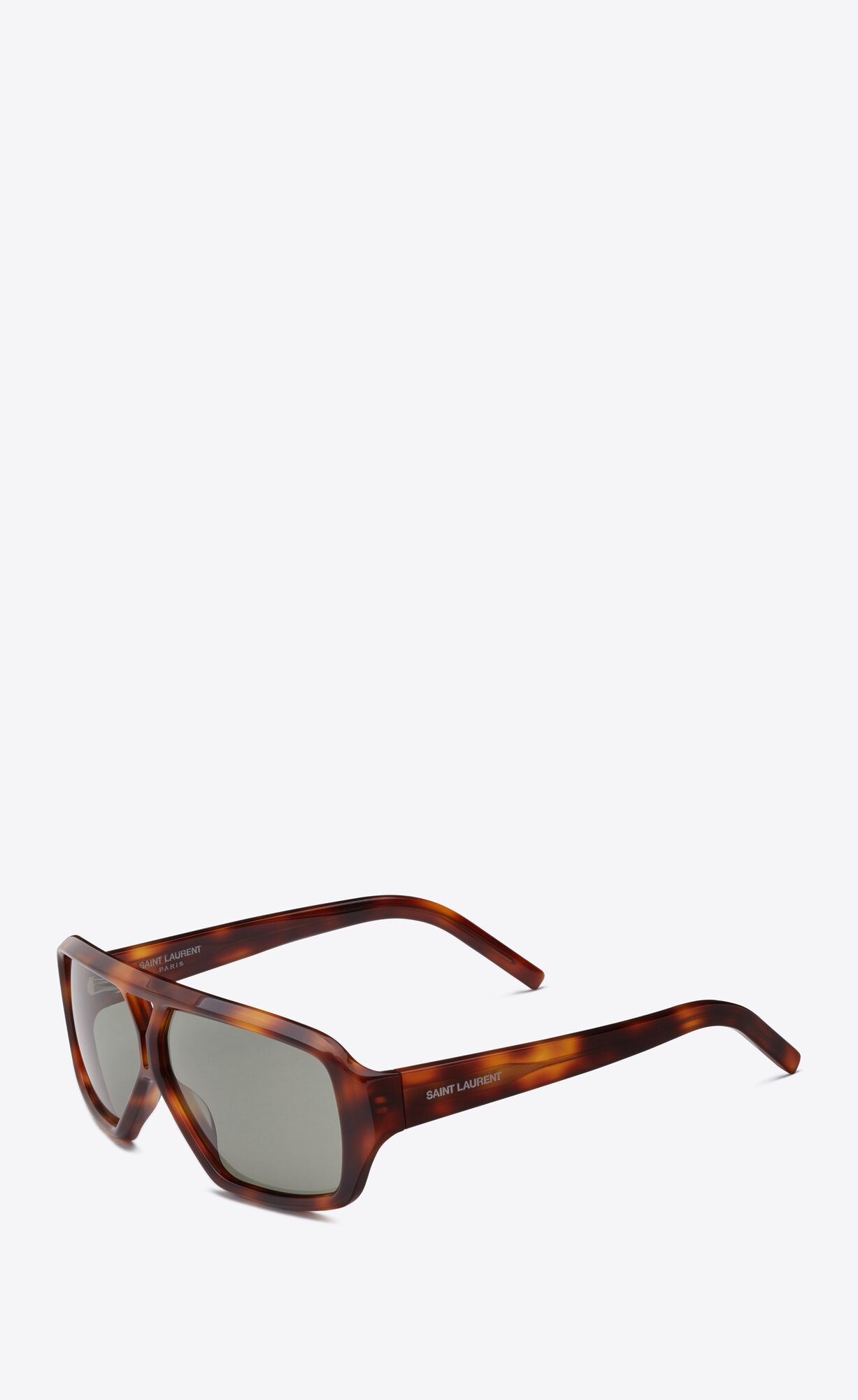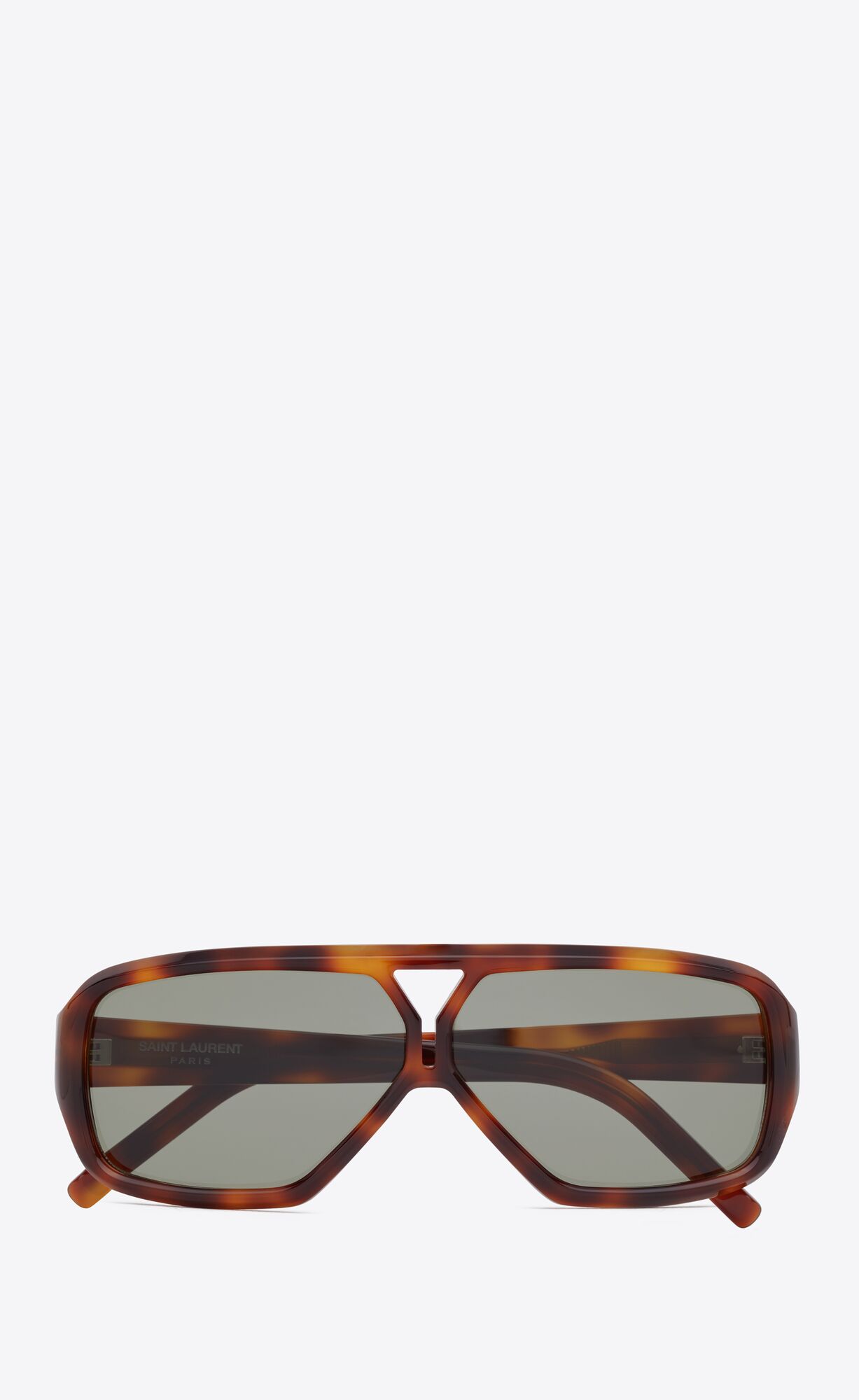 Tortoiseshell sunglasses with acetate aviator frames and nylon lenses, featuring a double bridge and Saint Laurent engraved temples.