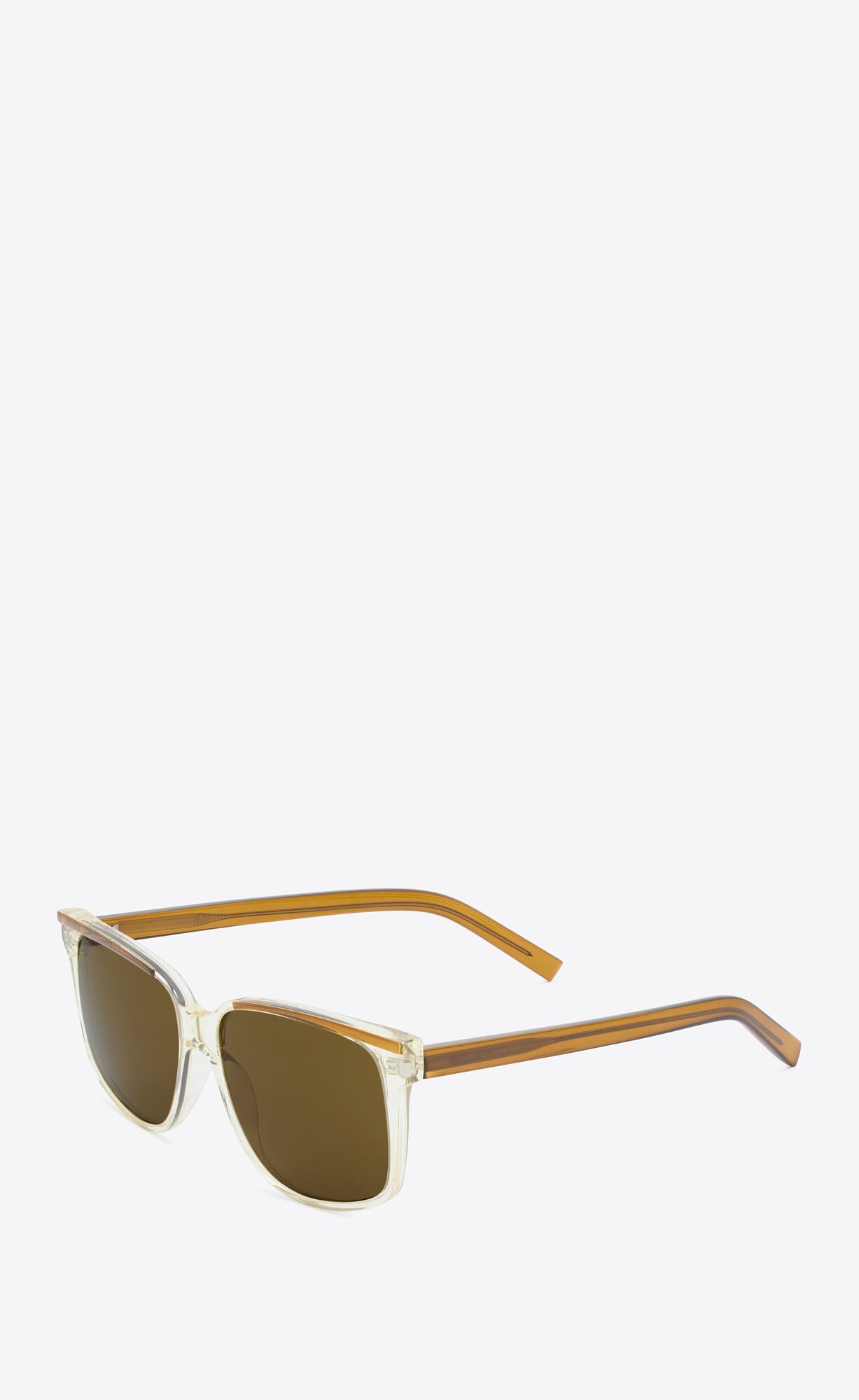 SUNGLASSES WITH SQUARE ACETATE FRAMES AND NYLON LENSES, FEATURING A SAINT LAURENT ENGRAVING ON THE TEMPLES.