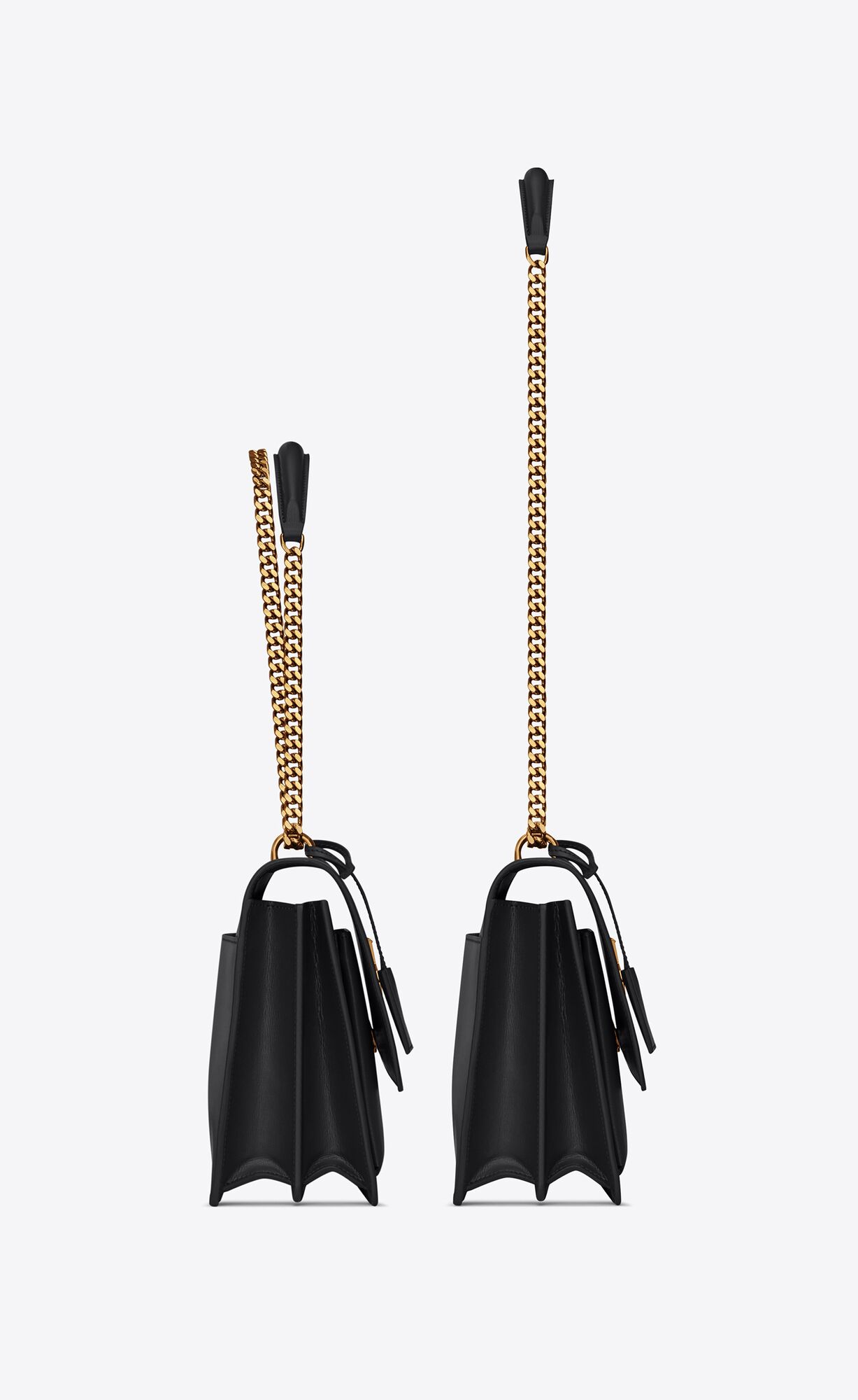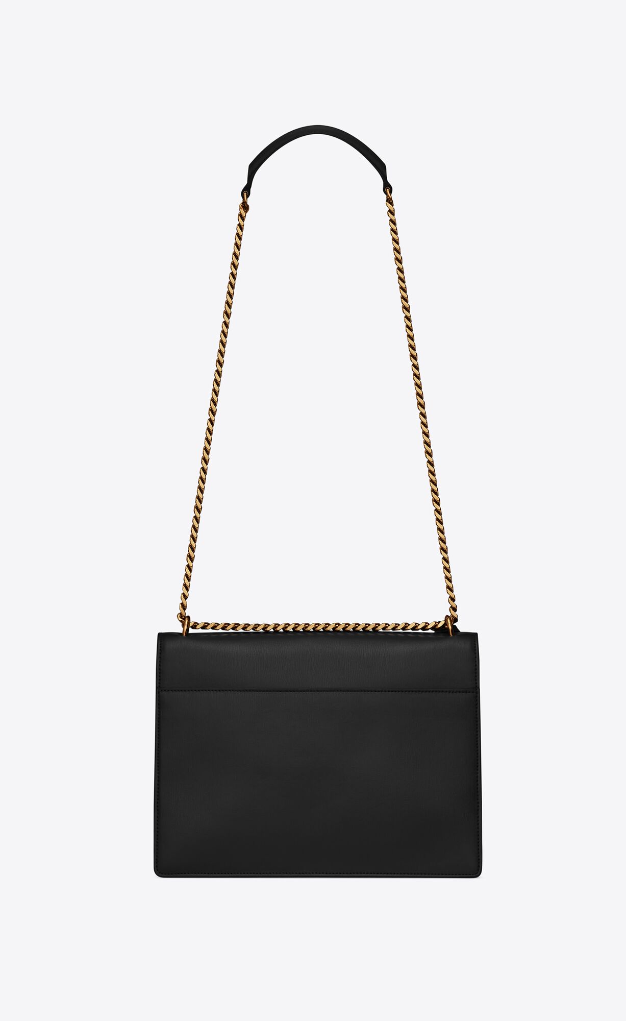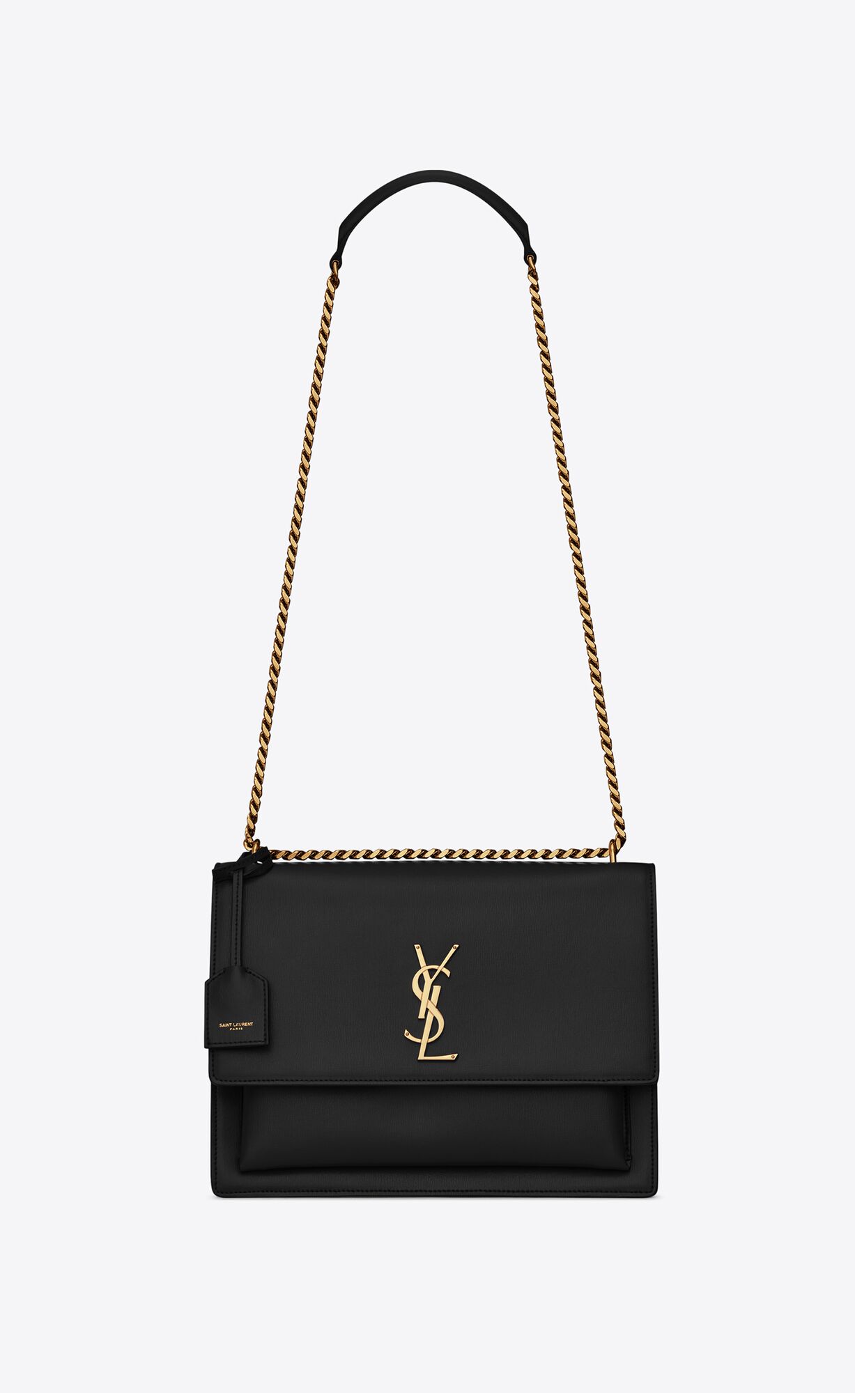 bag with front flap, side gussets, adjustable and removable leather should strap, leather-encased key ring and metal CASSANDRE.