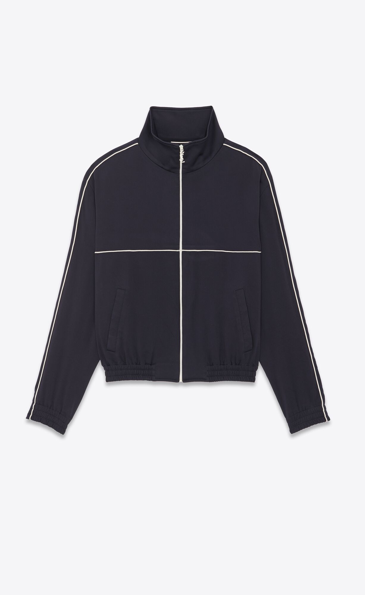 TEDDY JACKET WITH CONTRASTING PIPING, RIBBED EDGES, SIDE POCKETS AND ZIP CLOSURE WITH A CASSANDRE PULLER.