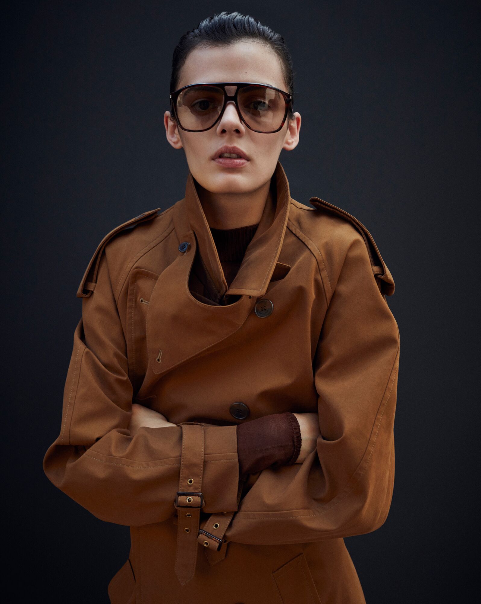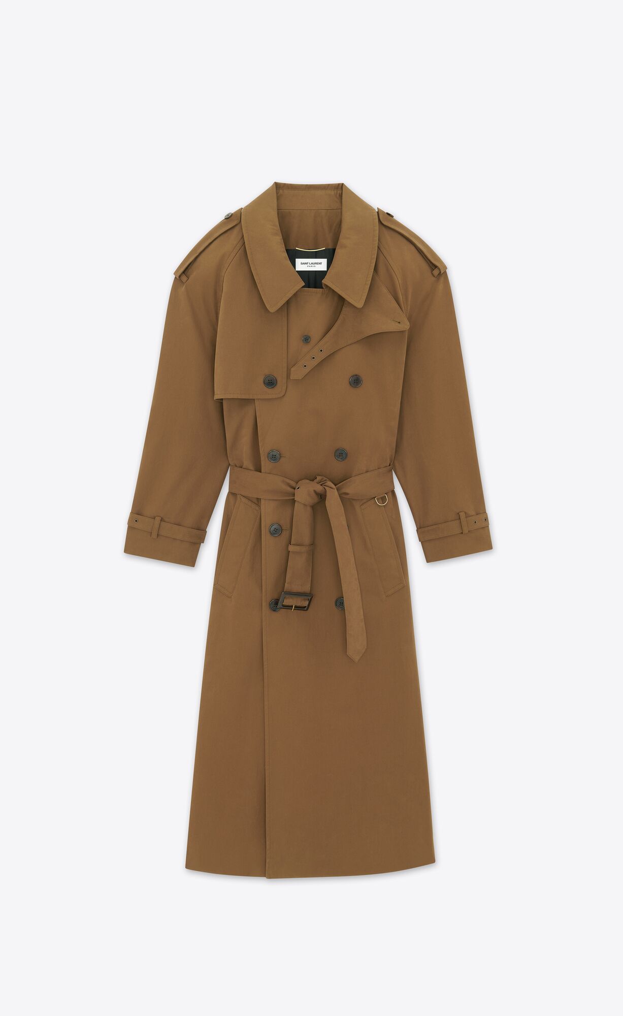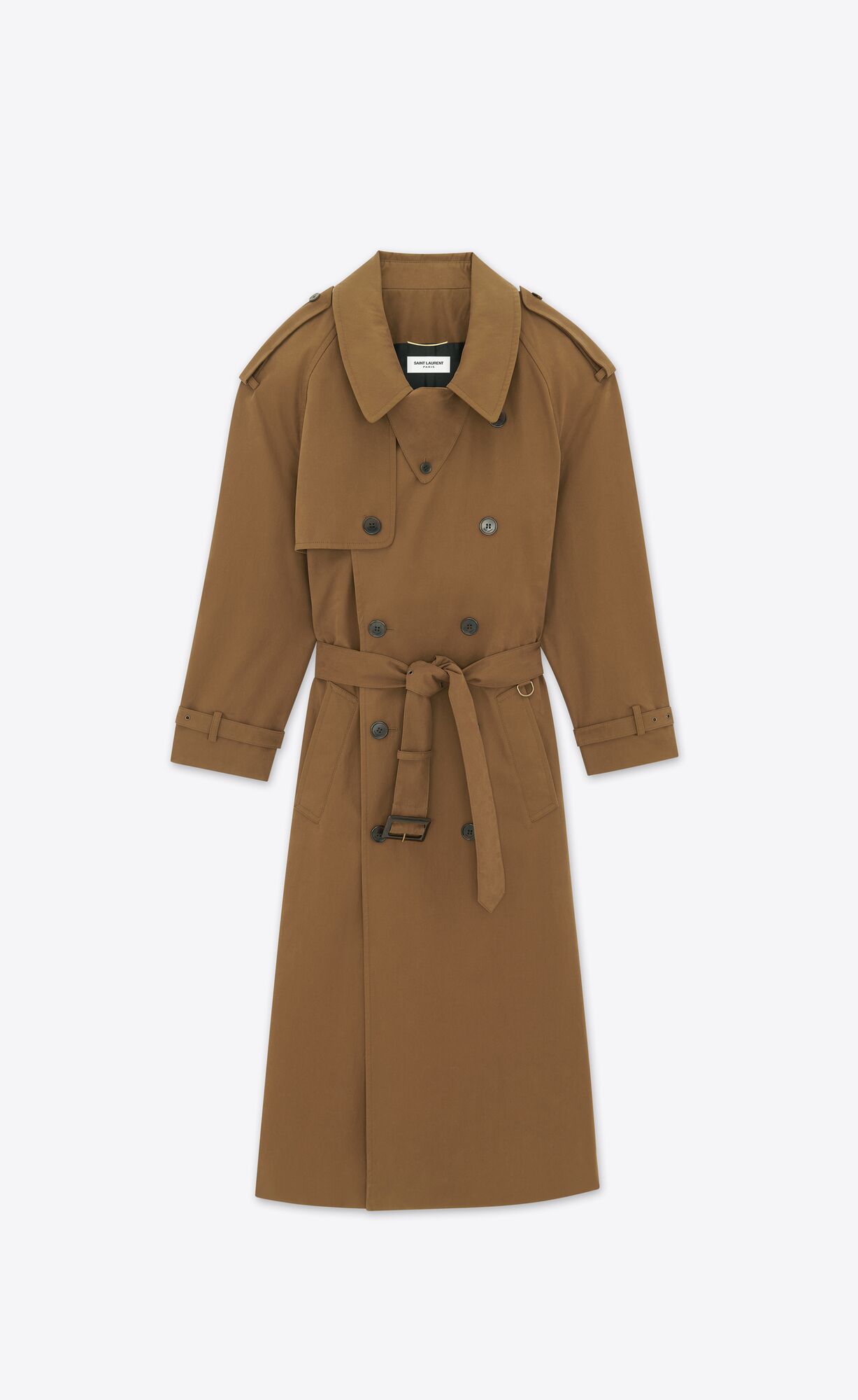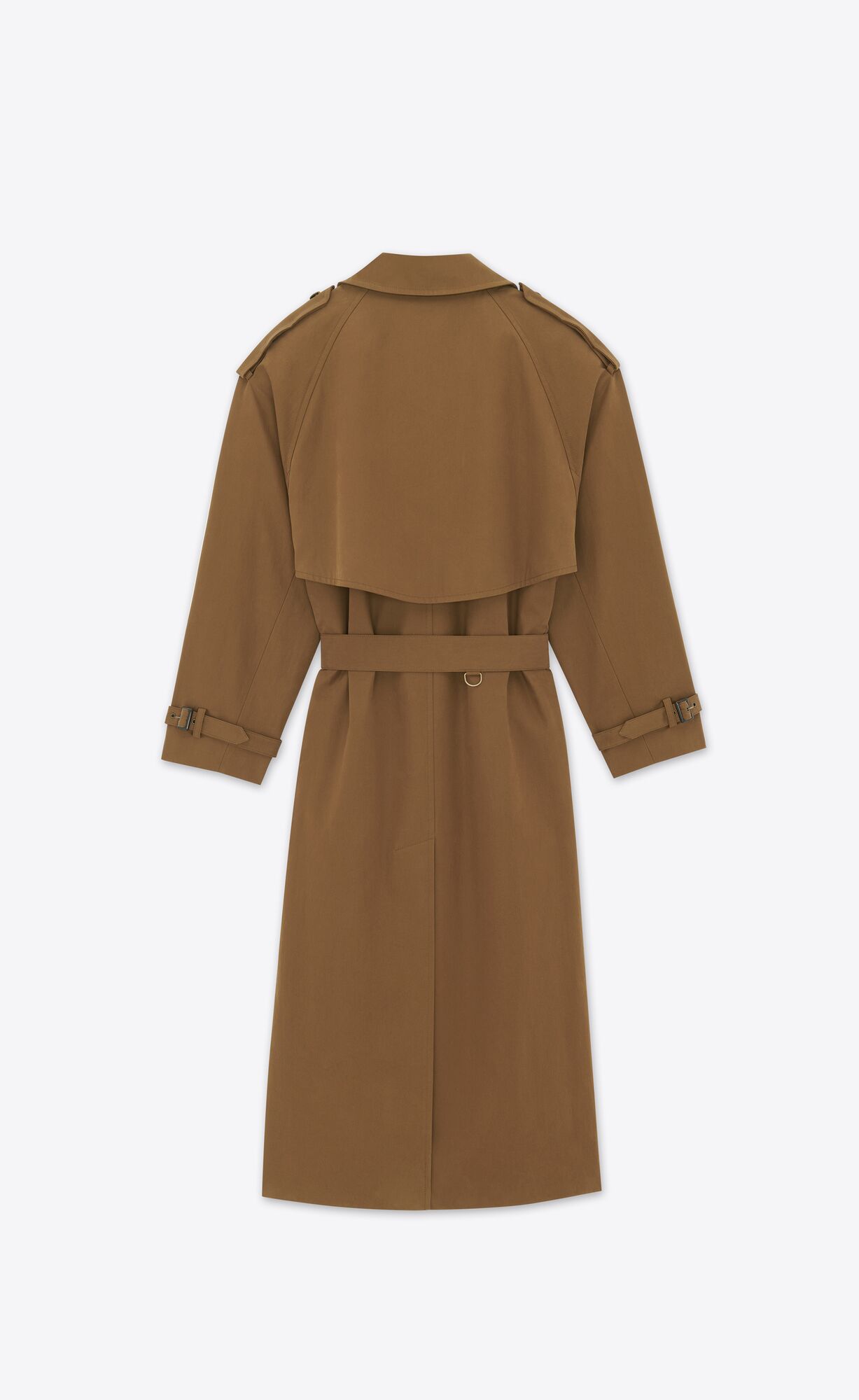 DOUBLE BREASTED TRENCH COAT FEATURING NOTCHED LAPEL, A STORM PATCH ON THE BACK, BELTED WAIST AND STRAPS ON WRISTS.
