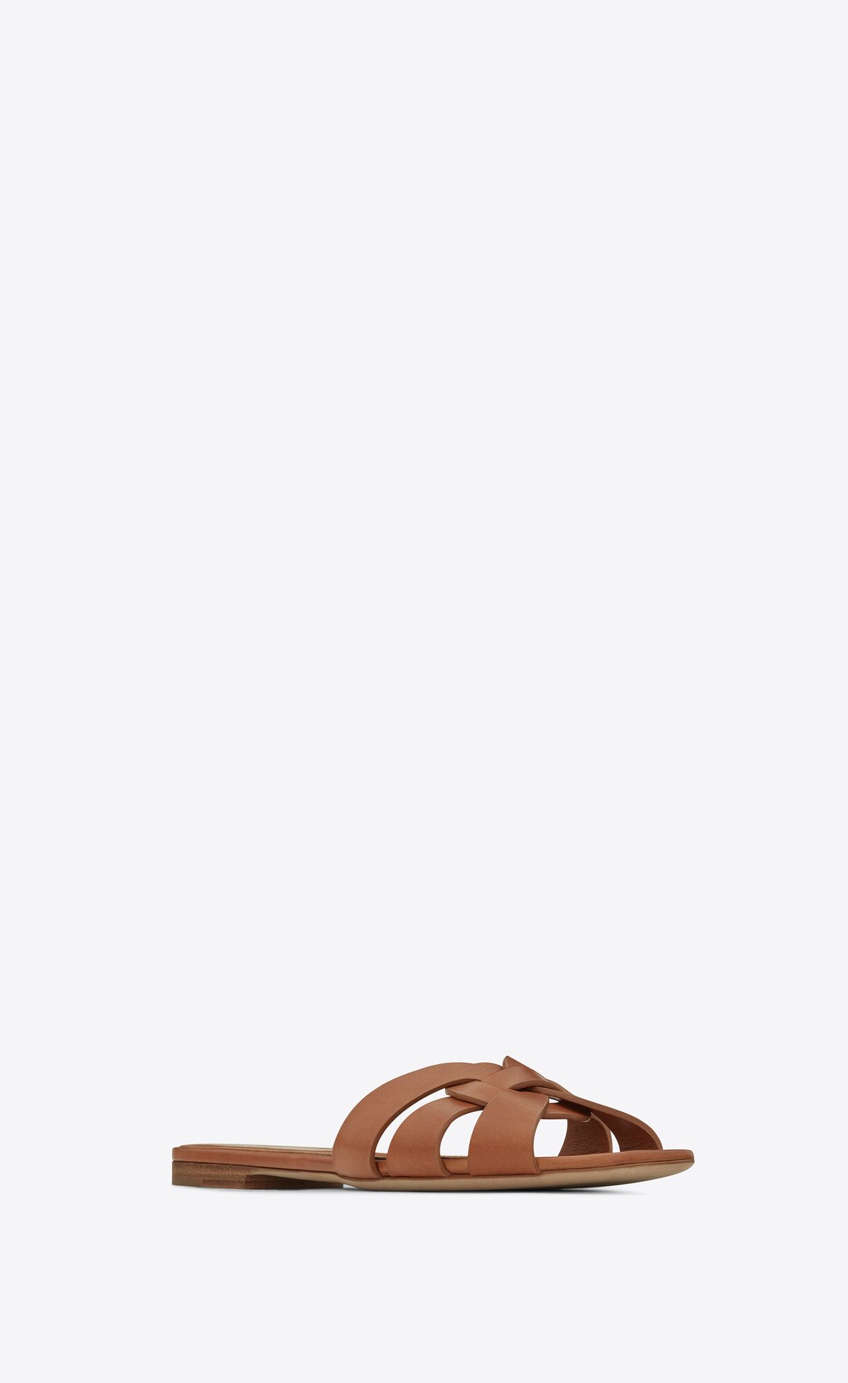 slide sandals made with metal-free tanned leather with intertwining straps. we recommend selecting half size bigger than your usual size.