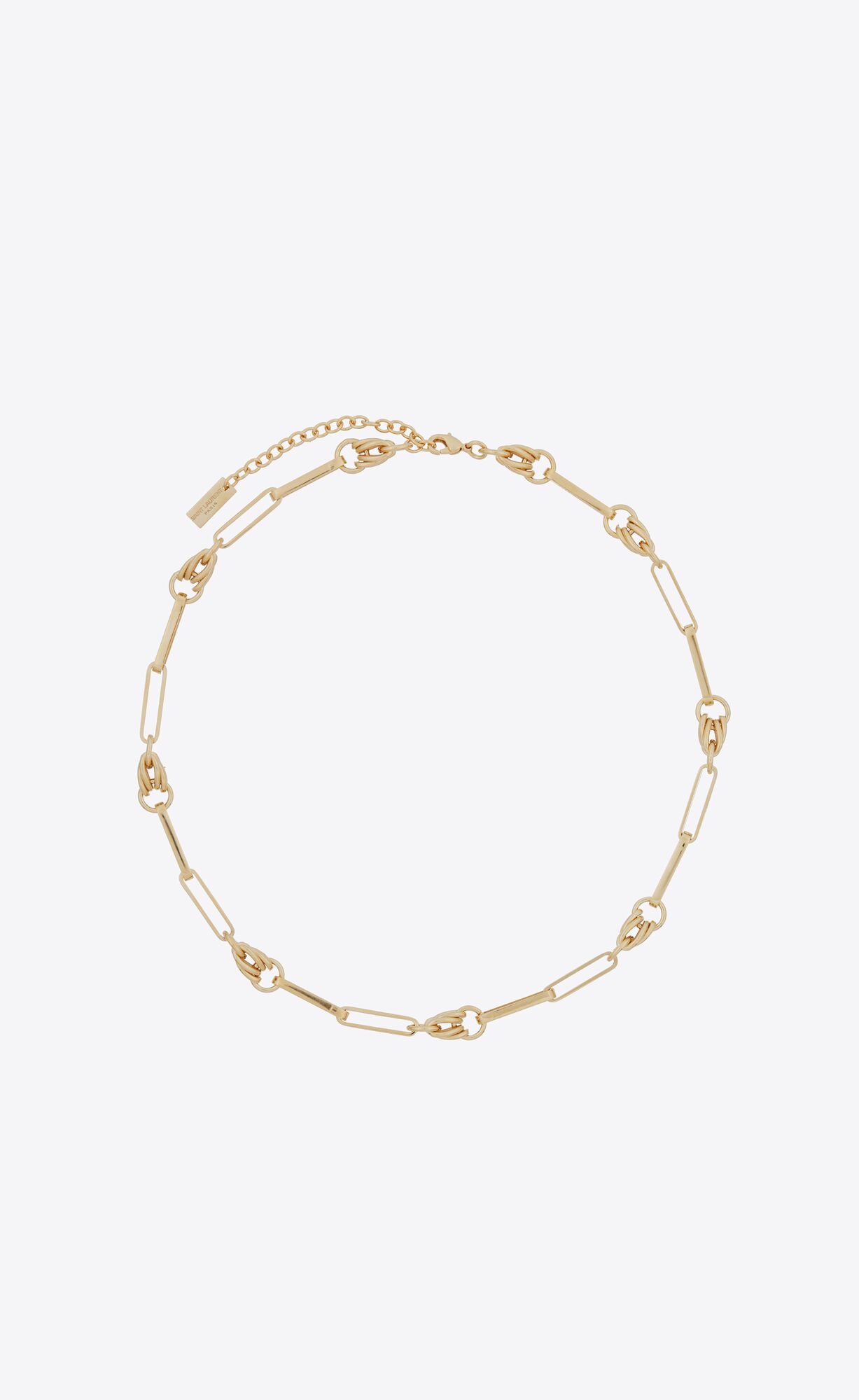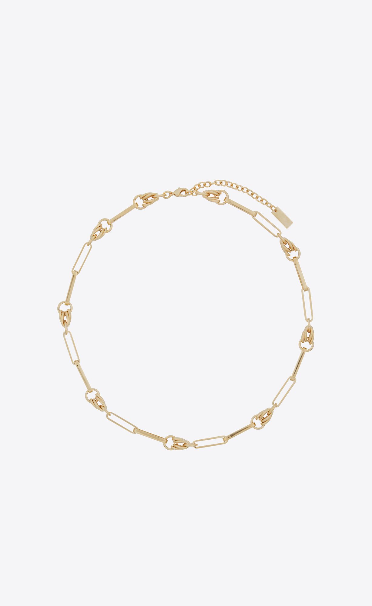 Vintage-style chain necklace with alternating sections of rectangular cable and knot links.