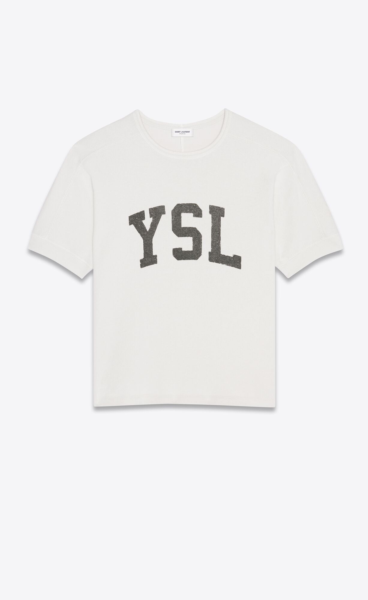 vintage t-shirt with YSL printed on the chest and YSL embroidery on sleeve.